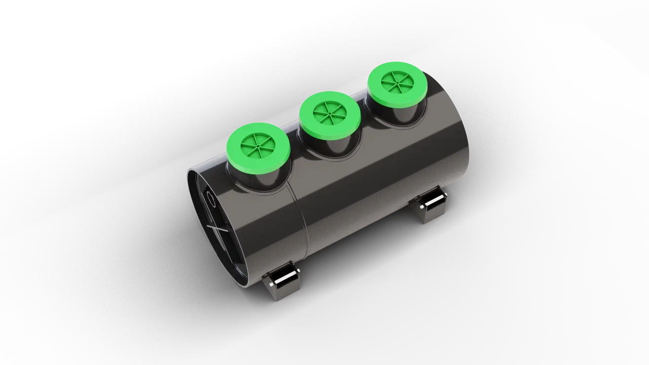 Септик также оснащен системой аэрации и эрлифтов с компрессором, которая позволяет повысить степень очистки септика, что позволит еще реже обслуживать систему почвенной доочистки (дренажную траншею или колодец). Компрессор входит в комплект поставки.