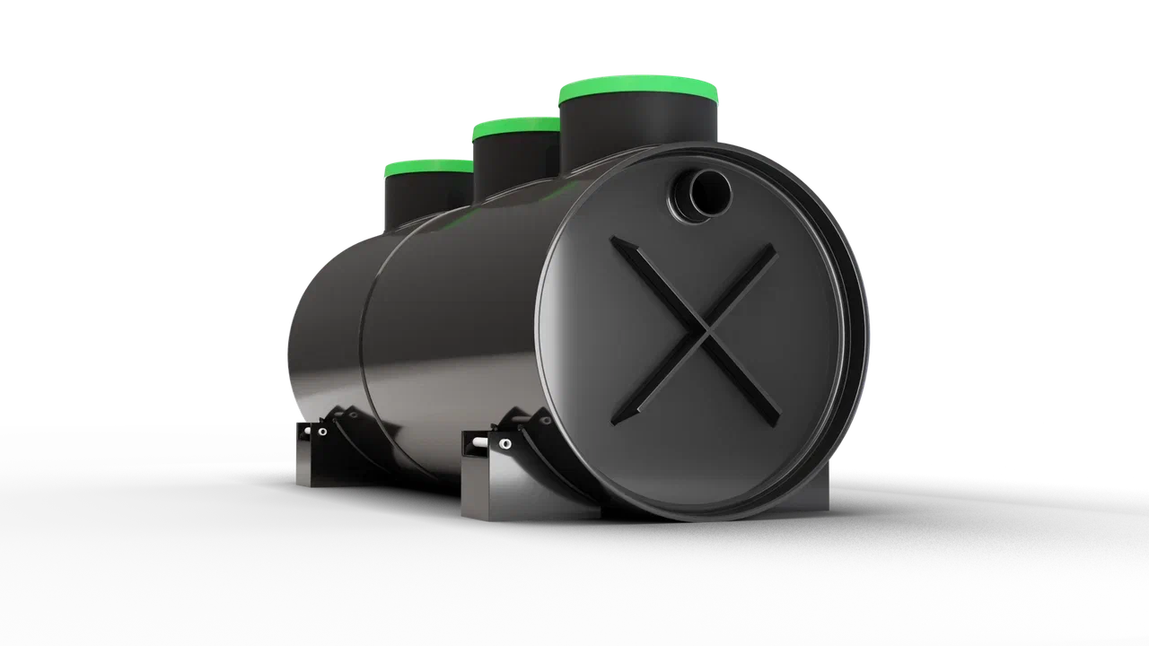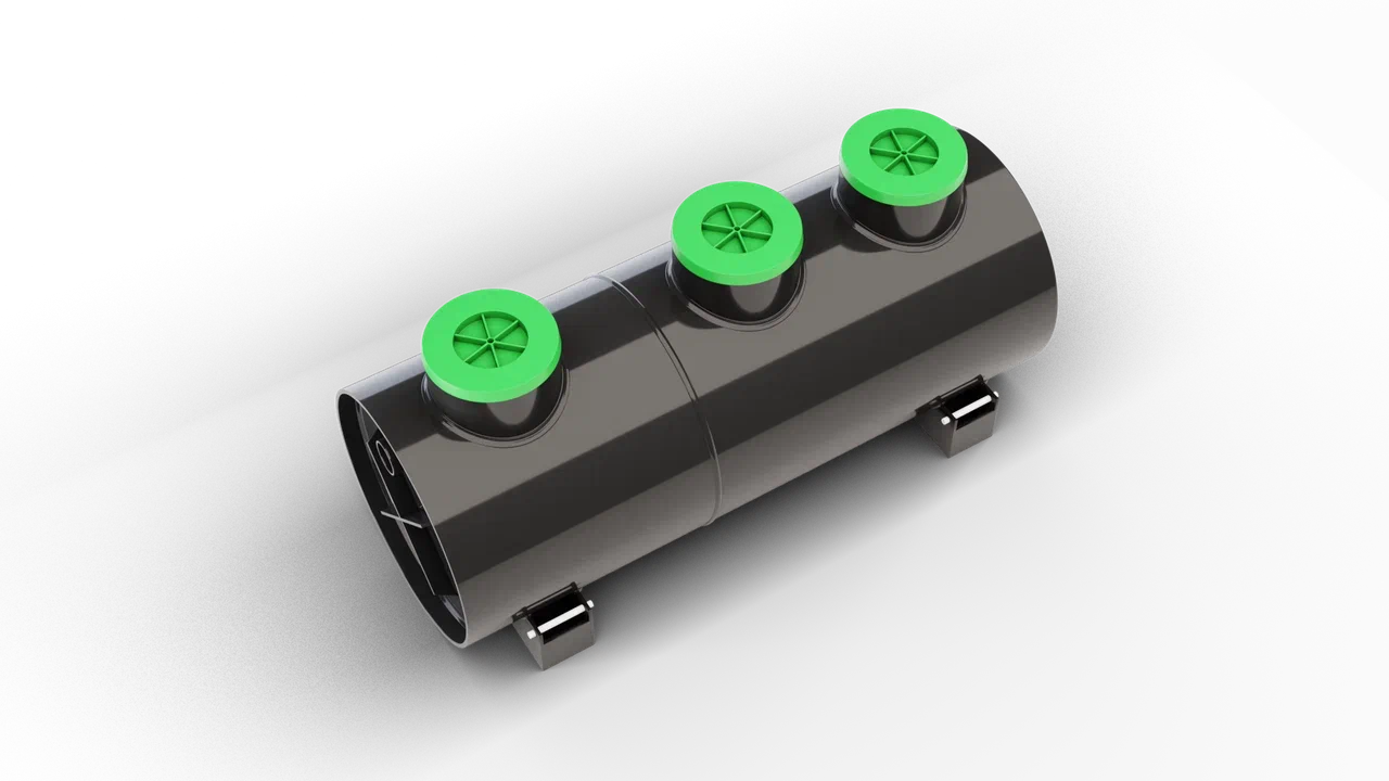 Септик также оснащен системой аэрации и эрлифтов с компрессором, которая позволяет повысить степень очистки септика, что позволит еще реже обслуживать систему почвенной доочистки (дренажную траншею или колодец). Компрессор входит в комплект поставки.